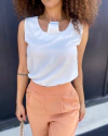 Blusa com design frente única, valorizando os ombros e conferindo um toque sofisticado ao seu visual.
